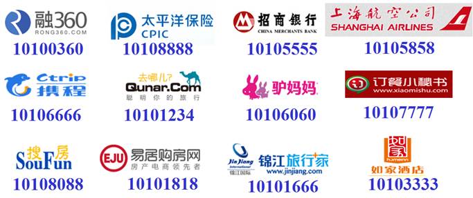 ●招商银行行10105555、平安贷款10100000、携程10106666、去哪网10101234、